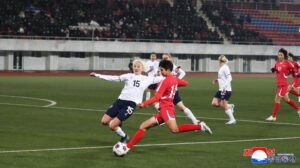 (평양 11월 28일발 조선중앙통신)우리 나라 국가녀자축구종합팀과 로씨야 국가녀자축구팀사이의 친선경기가 27일 김일성경기장에서 진행되였다.