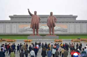 Flower baskets were laid before the statues of the great leaders on Mansu Hill in the names of the Party, power and armed forces organs, ministries, national agencies, units of the Korean People’s Army (KPA) and the Public Security Forces (PSF) and institutions, industrial establishments and universities at all levels in Pyongyang.