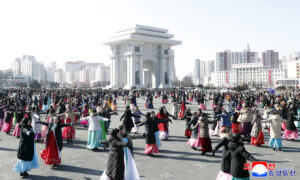 Pyongyang, February 9 (KCNA) — A dancing party of women’s union officials and members was held at the plaza of the Arch of Triumph in Pyongyang on Feb. 8, the 78th founding anniversary of the Korean People’s Army.