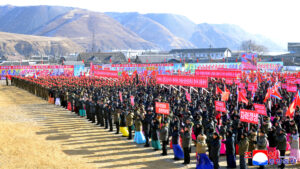 지역인민들의 이목이 집중된 착공식장들은 우리 국가의 전면적부흥을 촉진할 위대한 혁명사업에서 우리 군대특유의 무조건적인 집행정신과 완강한 실천력을 더욱 용감히 발휘해나갈 인민군관병들의 전투적열광으로 끓어번지고있었다.