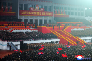 김정은동지께서 주석단에 나오시자 꿈결에도 뵙고싶던 아버지원수님을 영광의 단상에 높이 모시고 뜻깊은 창립일을 기념하는 최대의 행복을 받아안은 전체 참가자들이 터치는 폭풍같은 《만세!》의 환호성이 천지를 진감하였다.