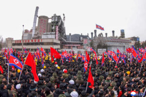 김정은동지께서 격려의 연설을 마치시자 전체 참가자들은 자기들에게 최상최대의 값높은 평가를 주시고 새 전망계획수행에서도 변함없는 기수가 되도록 대해같은 신임을 안겨주시는 원수님을 우러러 격정의 환호를 터쳐올리였다.