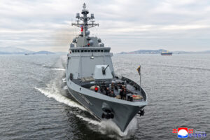 《우리 국가 해상방위력의 새로운 상징으로 되는 신형구축함의 작전운용평가시험들이 계획한바대로 순조롭게 진행되고있다.