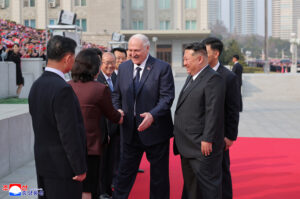 (평양 3월 26일발 조선중앙통신)조선민주주의인민공화국 국무위원장 김정은동지의 초청에 따라 우리 나라를 공식방문하는 벨라루씨공화국 대통령 알렉싼드르 루까쉔꼬동지를 환영하는 의식이 3월 25일 김일성광장에서 진행되였다.